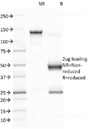 Fig. 1: SDS-PAGE Analysis Purified EBV Mouse Monoclonal Antibody (CS1). Confirmation of Integrity and Purity of Antibody.