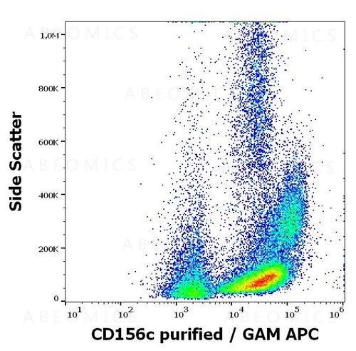 Figure1: Flow cytometry surface staining pattern of human peripheral whole blood stained using anti-human CD156c (11G2) purified antibody (concentration in sample 1.67 μg/ml, GAM APC).