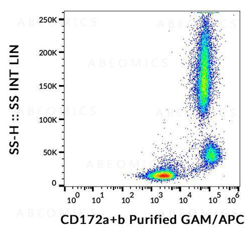 Figure 1 : Flow cytometry analysis (surface staining) of human peripheral blood cells with anti-human CD172a/b (SE5A5) purified, GAM-APC.
