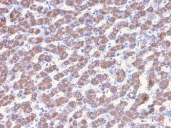Fig. 1: Formalin-fixed, paraffin-embedded human Liver stained with Prohibitin Mouse Monoclonal Antibody (PHB/3228).