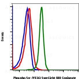 Proto-oncogene tyrosine-protein kinase Src (c-Src, Src), is a non-receptor tyrosine kinase. Src phosphorylates specific tyrosine residues in other proteins and is involved in signal transduction and is important in human tumor development and poor prognosis in cancers. There are nine enzymes (Fyn, Yes, Hck, Lck, Lyn, Blk, Frk, Yrk, and Fgr) closely-related to Src and are collectively called the Src family kinases (SFKs)(1). SFKs represent the largest family of nonreceptor tyrosine kinases and interact directly with receptor tyrosine kinases, G-protein-coupled receptors (GPCRs), steroid receptors, signals transducers, and activators of transcription and molecules involved in cell adhesion and migration. These events lead to proliferation, cell growth, differentiation, cell shape, motility, migration, angiogenesis, and survival. Phosphorylation at Tyr416 in the activation loop of the kinase domain upregulates phospho Src activity, while phosphorylation at Tyr527 in the carboxy-terminal tail decreases activity. Src has been strongly implicated in the development, maintenance, progression, and metastatic spread of several human cancers such as prostate, lung, breast, and colorectal. Structurally, SFKs are highly related to one another and contain conserved structural elements between family members. These elements include the N-terminal Src Homology 4 domain (SH4), the Src Homology 3 domain (SH3), Src Homology 2 domain (SH2), a linker sequence, the tyrosine kinase domain, and the C-terminal tail (2). The N-terminal domain, SH4, serves as a site for myristoylation and targets SFKs to the cytoplasmic membrane. The SH3 domain binds amino acid sequences rich in proline residues (3). This domain is critical for Src activity, intracellular localization, and the recruitment and binding of Src substrates. The SH2 domain binds to short motifs containing phospho-tyrosines. Together, the SH2 and SH3 domains cooperate in regulating SFKs catalytic activity.