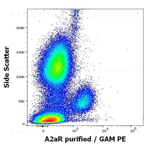 Figure 1: Flow cytometry intracellular staining pattern of human peripheral whole blood stained using anti-A2aR (7F6-G5-A2) purified antibody (concentration in sample 5 μg/ml, GAM APC).