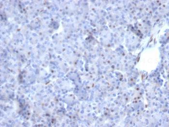 Fig. 1: Formalin-fixed, paraffin-embedded human Pancreas stained with AKT1 Mouse Monoclonal Antibody (AKT1/2784).