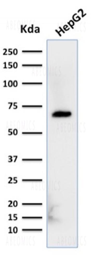 Fig. 1: Western Blot Analysis of HepG2 cell lysate using Albumin Monospecific Mouse Monoclonal Antibody (ALB/2356).