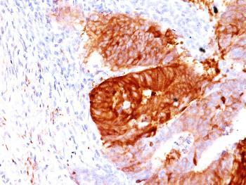 Fig. 1: Formalin-fixed, paraffin-embedded human Colon Carcinoma stained with ALDH1A1 Mouse Monoclonal Antibody (ALDH1A1/1381).