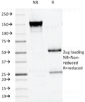 Fig. 1: SDS-PAGE Analysis Purified PLAP Mouse Monoclonal Antibody (ALPP/516). Confirmation of Integrity and Purity of Antibody.