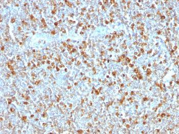 Fig. 1: Formalin-fixed, paraffin-embedded human Tonsil stained with Alpha-1-Antitrypsin Mouse Monoclonal Antibody (AAT/1379).