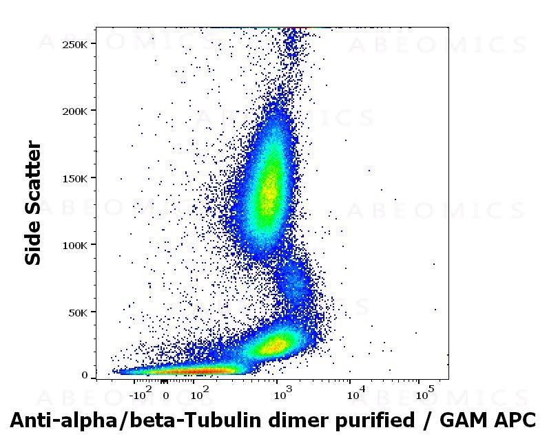 Figure 1:Flow cytometry intracellular staining pattern of human peripheral whole blood stained using anti-alpha/beta-tubulin dimer (TU-10) purified antibody (concentration in sample 8 μg/ml, GAM APC).