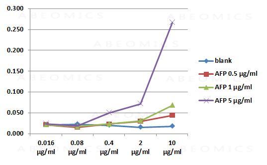 ELISA: The antibody AFP-01 has been tested as the detection antibody in a sandwich ELISA for analysis of human alpha-fetoprotein in combination with antibody AFP-11.
