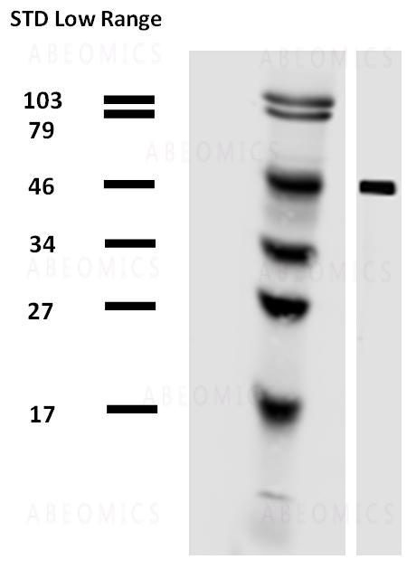 Figure 1: Western blotting analysis of alpha-tubulin in porcine brain lysate by antibody TU-01 biotin.