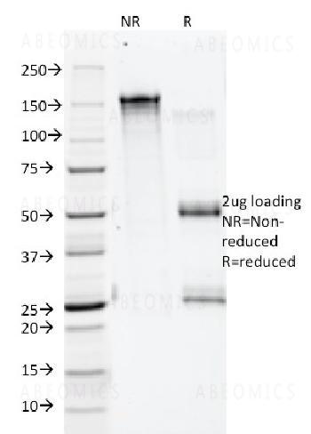Fig. 1: SDS-PAGE Analysis Purified Annexin A1 Mouse Monoclonal Antibody (ANEX 5E4/1). Confirmation of Integrity and Purity of the Antibody.