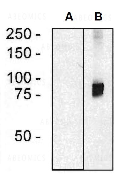 Figure 1: Western blotting analysis of ARHGEF4 in HEK293 cells (A) and HEK293-ARHGEF4 transfectants (B) using mouse monoclonal anti-ARHGEF4 (clone ARHGEF-08).
