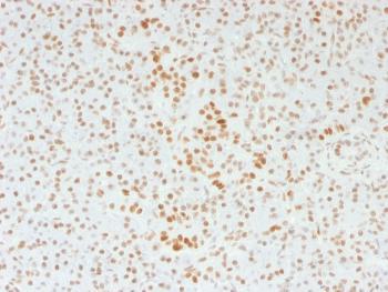 Fig. 1: Formalin-fixed, paraffin-embedded human Pancreas stained with ATRX Mouse Monoclonal Antibody (39f).