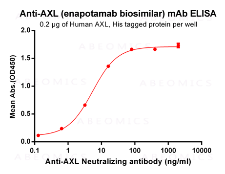 Figure-1: ELISA plate pre-coated by 2 μg/ml (100 μl/well) Human AXL, His tagged protein can bind Anti-AXL Neutralizing antibody in a linear range of 0.64-80 ng/ml.