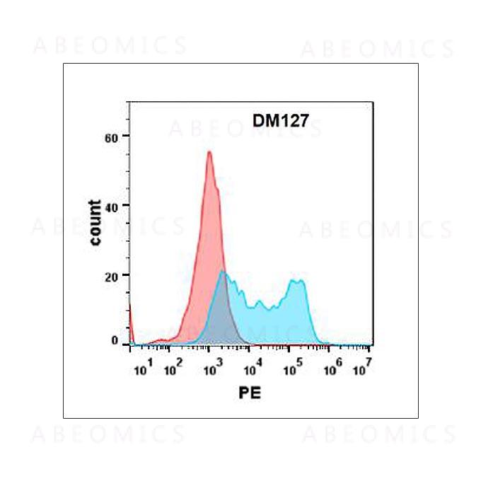 Figure 1. Flow cytometry analysis with Anti-BAFF-R (DM127) on Expi293 cells transfected with human BAFF-R (Blue histogram) or Expi293 transfected with irrelevant protein(Red histogram).