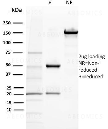 Fig. 1: SDS-PAGE Analysis Purified BAP1 Mouse Monoclonal Antibody (BAP1/2432). Confirmation of Purity and Integrity of Antibody.