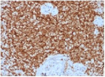 Figure 1: Formalin-fixed, paraffin-embedded human Spleen stained with Bcl-2 Rabbit Recombinant Monoclonal Antibody (BCL2/1878R).