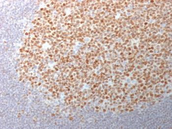 Fig. 1: Formalin-fixed, paraffin-embedded human Tonsil stained with BCL-6 Mouse Monoclonal Antibody (BCL6/1982).