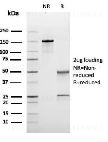 Fig. 1: SDS-PAGE Analysis Purified bcl-6 Recombinant Mouse Monoclonal Antibody (rBCL6/1475). Confirmation of Purity and Integrity of Antibody.