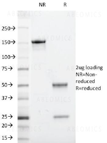 Fig. 1: SDS-PAGE Analysis Purified Beta-2-Microglobulin Mouse Monoclonal Antibody (246-E9.E7). Confirmation of Integrity and Purity of Antibody.