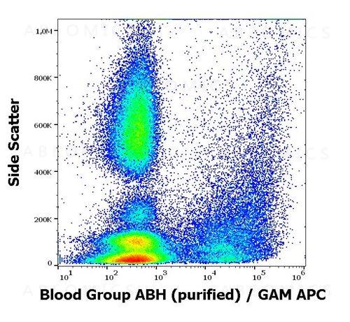 Figure 1: Flow cytometry surface staining pattern of human peripheral whole blood from group A donor stained using anti-blood group ABH (HE-10) purified antibody (concentration in sample 4 μg/ml, GAM APC).