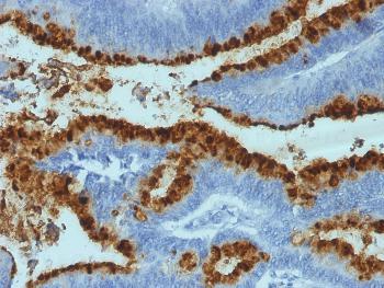 Fig. 1: Formalin-fixed, paraffin-embedded human Colon Carcinoma stained with Blood Group Antigen Lewis B Mouse Monoclonal Antibody (2-25LE).