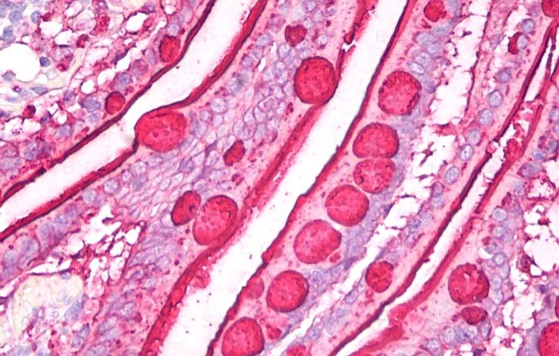 Figure 1: Immunohistochemistry staining of human small intestine (paraffin sections) using anti-blood group Lewis b (clone 2-25LE).