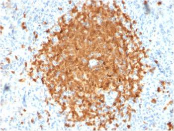 Fig. 1: Formalin-fixed, paraffin-embedded human Spleen stained with BOB1 Monospecific Mouse Monoclonal Antibody (BOB1/2424).