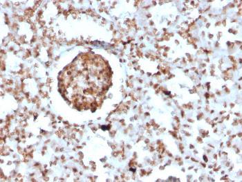 Fig. 1: Formalin-fixed, paraffin-embedded Mouse BrdU-incorporated Kidney stained with BrdU Rabbit Recombinant Monoclonal Antibody (BRD2888R).