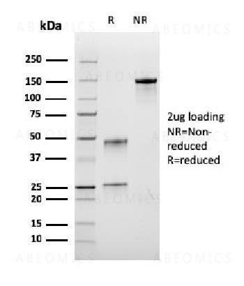 Fig. 1: SDS-PAGE Analysis Puriifed BrdU Recombinant Mouse Monoclonal Antibody (rBRD.3). Confirmation of Purity and Integrity of Antibody.