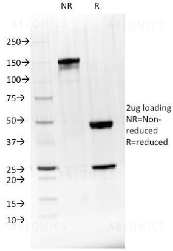 Fig. 1: SDS-PAGE Analysis Purified BTLA Mouse Monoclonal Antibody (BTLA/1528). Confirmation of Integrity and Purity of Antibody.