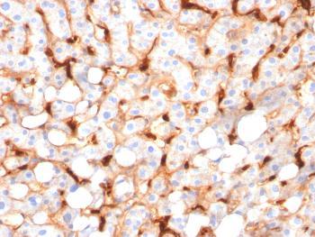 Fig. 1: Formalin-fixed, paraffin-embedded human Hepatocellular Carcinoma stained with C1QB Mouse Monoclonal Antibody (C1QB/2966).