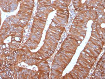 Fig. 1: Formalin-fixed, paraffin-embedded human Colon Carcinoma stained with Calpastatin Mouse Monoclonal Antibody (CAST/1550).