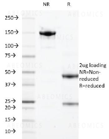 Fig. 1: SDS-PAGE Analysis Purified Calprotectin Monoclonal Antibody (DF3973). Confirmation of Integrity and Purity of Antibody.