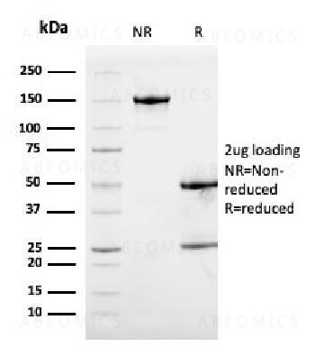 Fig. 1: SDS-PAGE Analysis Purified Calprotectin Mouse Monoclonal Antibody (S100A9/1075). Confirmation of Purity and Integrity of Antibody
