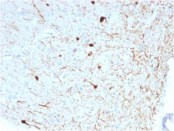 Fig. 1: Formalin-fixed, paraffin-embedded human Cerebellum stained with Calretinin Mouse Monoclonal Antibody (CALB2/2786).