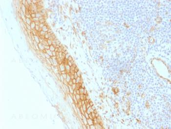 Fig. 1: Formalin-fixed, paraffin-embedded human Tonsil stained with Beta-Catenin (p120) Monoclonal Antibody (CTNNB1/1509).