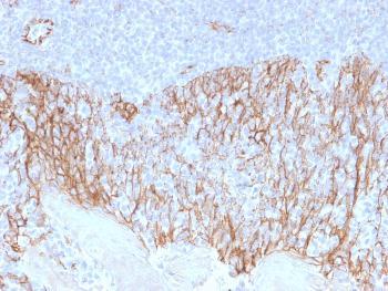 Fig. 1: Formalin-fixed, paraffin-embedded human Tonsil stained with Beta-Catenin Mouse Monoclonal Antibody (CTNNB1/2099).