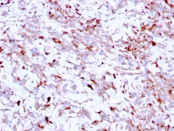 Fig. 1: Formalin-fixed, paraffin-embedded human Liver Carcinoma stained with Cathepsin K Mouse Monoclonal Antibody (CTSK/2791).