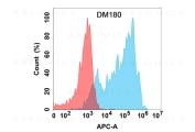 Figure 1. Flow cytometry analysis with Anti-CCR8 (DM180) on Expi293 cells transfected with human CCR8 (Blue histogram) or Expi293 transfected with irrelevant protein (Red histogram).