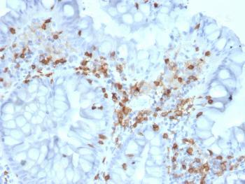 Fig. 1: Formalin-fixed, paraffin-embedded human Colon stained with CD103 Mouse Monoclonal Antibody (ITGAE/2063).