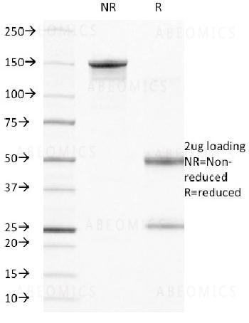 Fig. 1: SDS-PAGE Analysis Purified CD104 Mouse Monoclonal Antibody (UMA9). Confirmation of Integrity and Purity of Antibody