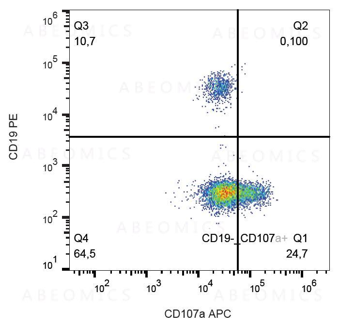 Figure 1: Intracellular staining of human peripheral blood cells with anti-CD107a (H4A3) APC.