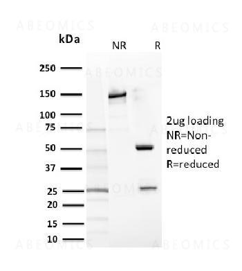 Fig. 1: SDS-PAGE Analysis Purified CD117 Mouse Monoclonal Antibody (KIT/2669). Confirmation of Purity and Integrity of Antibody.