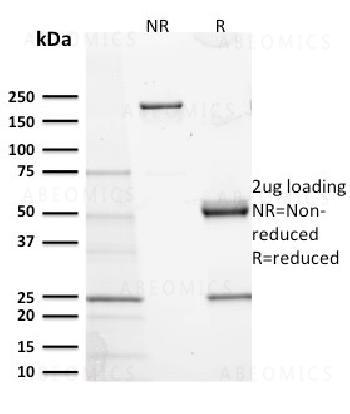 Fig. 1: SDS-PAGE Analysis Purified CD117 Mouse Monoclonal Antibody (KIT/2673). Confirmation of Purity and Integrity of Antibody.