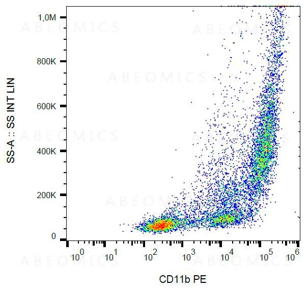 Figure 1: Surface staining of PMA-activated human peripheral blood cells with anti-human CD11b activation epitope (CBRM1/5) PE.