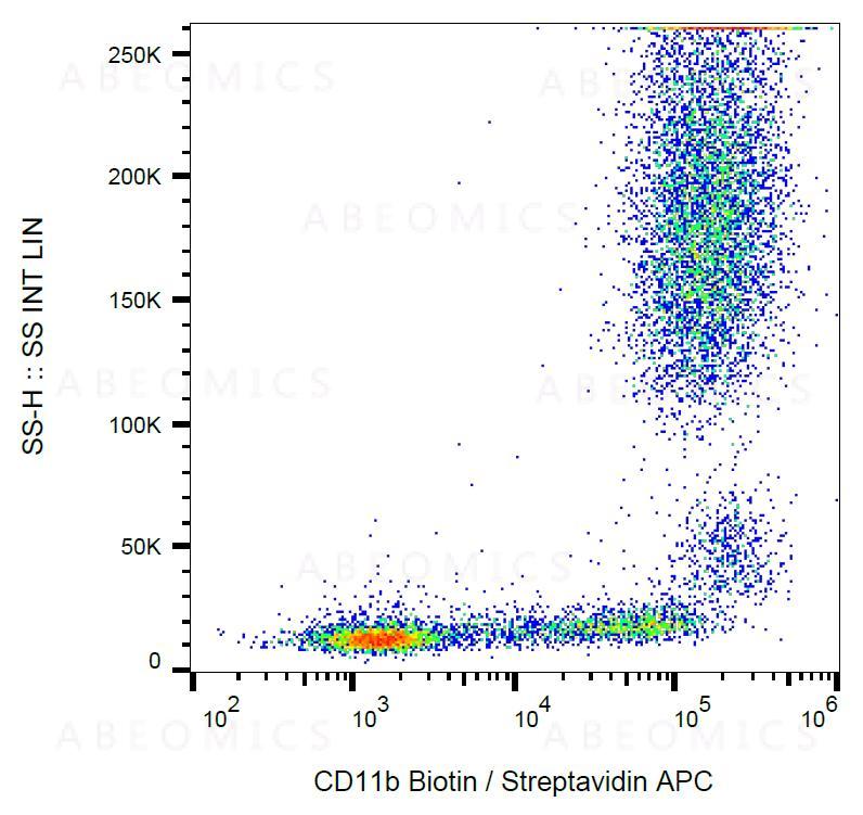 Figure 1: Surface staining of human peripheral blood with anti-human CD11b (MEM-174) biotin, streptavidin-APC.