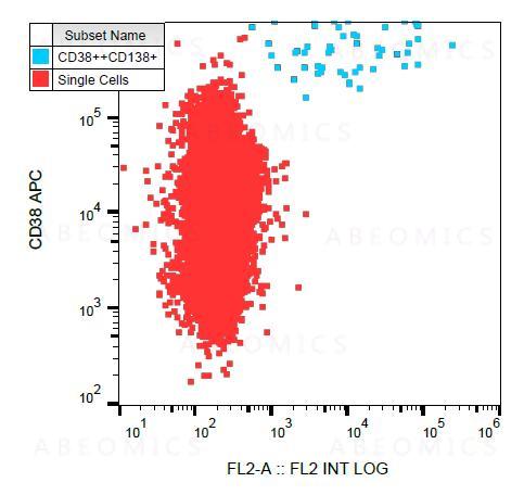 Figure 1: Surface staining of human peripheral blood with anti-human CD138 (MI15) PE.