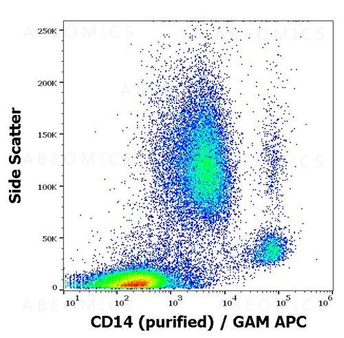 Figure 1: Flow cytometry surface staining pattern of human peripheral whole blood stained using anti-human CD14 (MEM-15) purified antibody