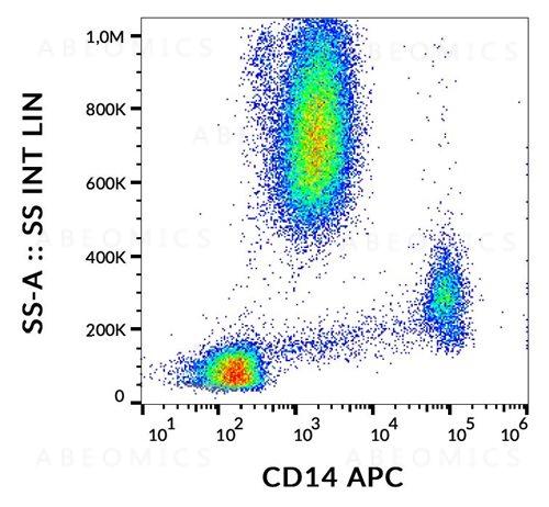 Figure 1: Flow cytometry analysis (surface staining) of human peripheral blood cells with anti-human CD14 (MEM-15) APC.